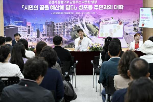 안산시는 이날 성포동 행정복지센터에서 ‘시민의 꿈을 예산에 담다’를 주제로 주민과의 대화를 개최하고, 지역 현안 해결을 위한 소통의 시간을 가졌다. 성포동 주민과 직능단체 관계자 등 80여 명이 참석한 이날 행사에서 이 시장은 주요 시정 운영 방향과 동 현안 사업을 설명하고, 주민 건의 사항에 대해 논의했다.
