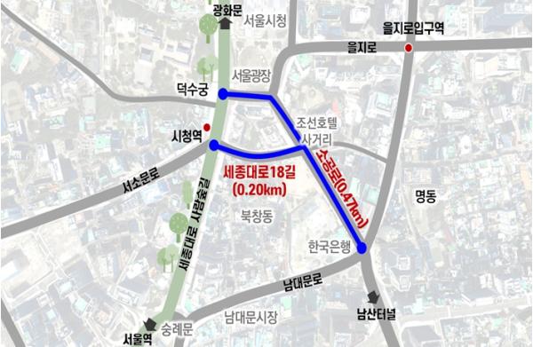 서울시는 내년 10월 준공을 목표로 소공로·세종대로18길 일대에 횡단보도 신설 및 이설, 차로 축소 및 보도 폭 확장, 일방통행 도로 역주행 방지, 녹지공간 조성 등을 추진할 예정이다.