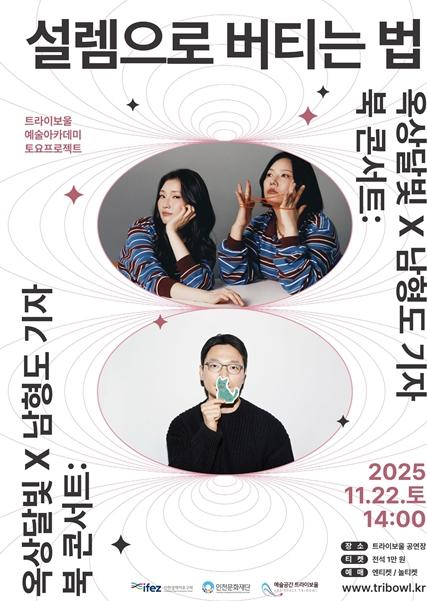 (재)인천문화재단이 운영하는 트라이보울에서 오는 11월 22일 오후 2시, '트라이보울 토요프로젝트 ‘옥상달빛×남형도 기자 북 콘서트: 설렘으로 버티는 법’' 이 열린다.