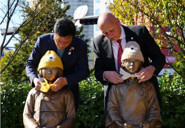 이승로 구청장은 “평화의 소녀상이 전하는 아픔과 인권의 메시지를 늘 마음에 새기고 있으며, 소녀상이 춥지 않도록 작은 온정을 전하고 싶었다”며 “앞으로도 양 도시가 힘을 모아 인권과 인간의 존엄성을 상징하는 평화의 소녀상을 함께 지켜나가길 기대한다”고 밝혔다.