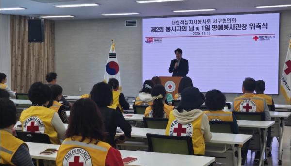 대한적십자사 인천지사는 서북봉사관에서 11.10일 ‘대한적십자사 봉사회 서구협의회 제2회 봉사자의 날 및 서구청장 1일 명예봉사관장 위촉식’을 진행했다.