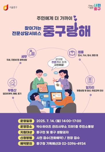 서울 중구가 오는 7월 14일 오후 2시부터 5시까지 약수하이츠 관리사무소 지하 1층 주민소통방에서 ‘중구랑해’를 운영한다.