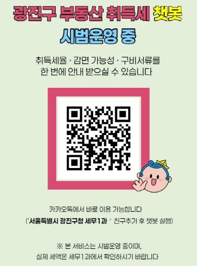 광진구가 부동산 정책 변화에 따른 취득세 감면 확대와 직접 신고 증가에 대응하기 위해 카카오톡 기반 ‘부동산 취득세 안내 채팅로봇’을 시범 운영한다.