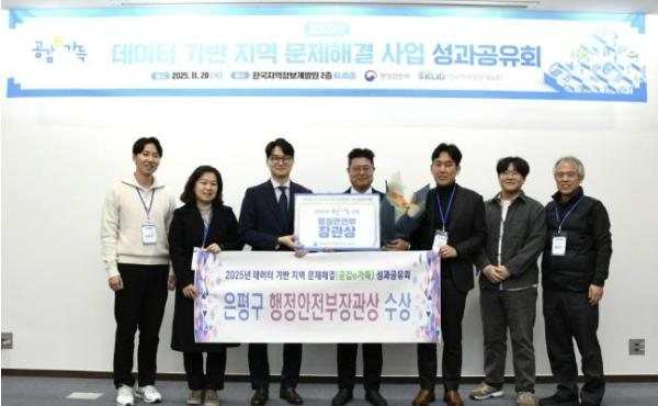 서울 은평구는 지난 20일 한국지역정보개발원 KLID홀에서 열린 성과공유회에서 ‘2025년 데이터 기반 지역 문제해결(공감e가득) 사업’에서 AI-IoT 기반 전동보장구 이동 안전 플랫폼 구축 성과를 인정받아 행안부장관상을 받았다고 밝혔다.