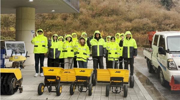 훈련에는 가족공원사업단장을 포함한 비상근무 대책반 전원이 참여해 ▲제설 차량 및 부착 장비 점검 ▲제설제 살포기·제설기 운용 실습 ▲적설 취약 구간 우선순위 선정과 동선 숙지 등 실효성 있는 훈련이 진행되어 시민 안전을 위한 대응체계를 점검했다.