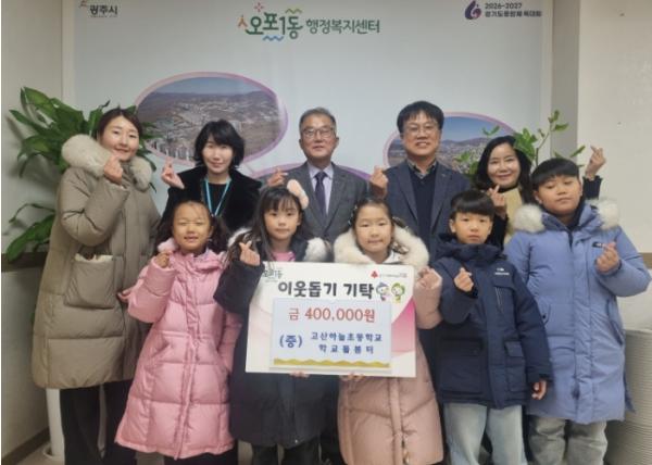 고산하늘초등학교 학교돌봄터 아이들은 3일 지역의 어려운 이웃을 위해 써달라며 오포1동에 성금 40만 원을 전달했다.