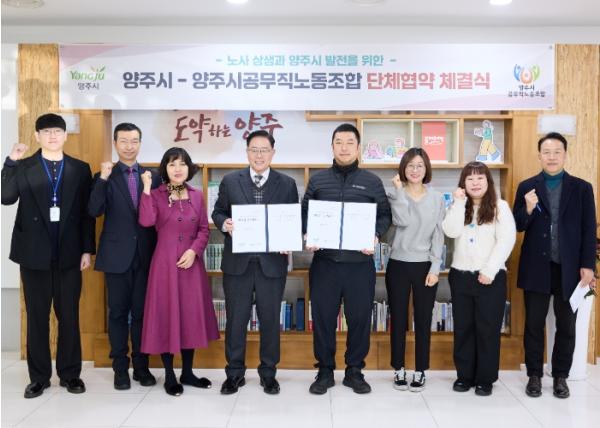 양주시와 양주시공무직노동조합이 공무직 근로자의 근무여건 개선과 건전한 노사 관계 확립을 위해 새로운 단체협약을 체결했다.