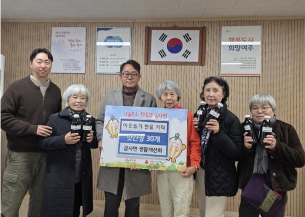 여주시농업기술센터의 농업인 학습단체 육성지원 사업의 일환으로 열린 이날 행사에서 회원들이 직접 만든 맛간장 30개를 금사면 행정복지센터에 이웃돕기 물품으로 기탁하며 나눔을 실천했다.