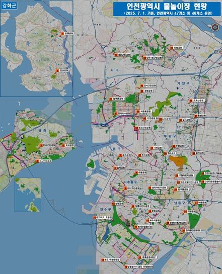 특히, 올해는 강화군 길상공원(온수리 82-9), 연수구 새싹공원(옥련동 238-1), 남동구 인천대공원(무네미로 238), 논현포대근린공원(논현동 648-1) 등 물놀이장 4곳이 추가로 조성돼 어린이들에게 더욱 다양한 물놀이 환경을 제공할 예정이다.
