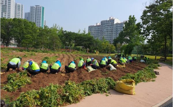 구는 지난 3월부터 항동·오류IC 도시농업체험장에서 감자 모종을 식재하고 약 3개월간 정성껏 재배해 수확했다.