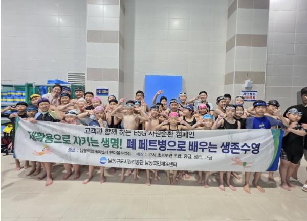 인천시 남동구 도시관리공단은 남동국민체육센터에서 초등부 수영강습반 어린이 80명을 대상으로 폐페트병을 활용한 생존수영 교육을 했다고 3일 밝혔다.