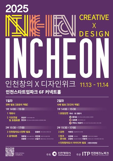 인천광역시는 오는 11월 13일부터 14일까지 이틀간 인천스타트업파크 커넥트홀에서 '2025 인천창의X디자인위크'를 개최한다고 밝혔다.