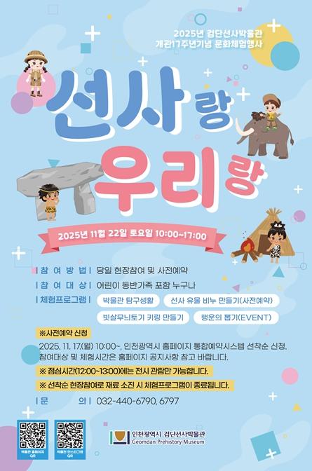 인천광역시 검단선사박물관은 오는 22일 개관 17주년을 맞아 문화체험행사 '선사랑 우리랑'을 개최한다고 밝혔다.