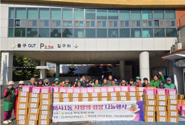하남시 미사1동 새마을협의회(회장 김성호)와 부녀회(회장 유정자)는 2025년 11월 19일, 본격적인 겨울을 맞아 관내 소외계층 100가구에 전달할 ‘사랑의 김장김치 나눔 행사’를 성황리에 진행했다.