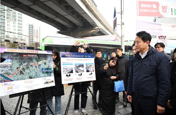 이날 오 시장은 유진상가와 홍은사거리 일대를 차례로 방문해 도시환경을 저해하고 지역발전의 걸림돌로 작용하는 내부순환로 지하화에 대한 효율적 추진 전략을 모색했다.