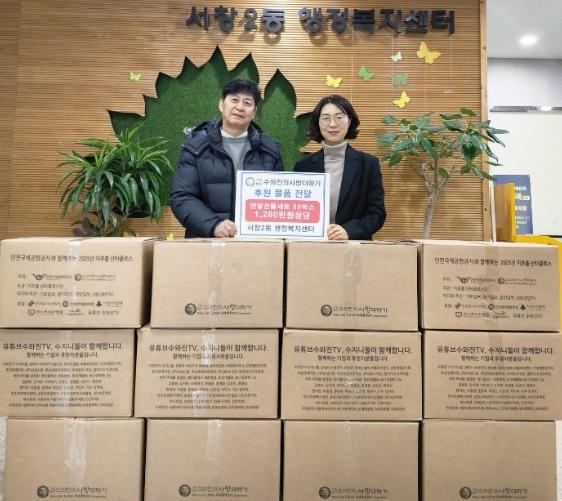 인천시 남동구 서창2동 행정복지센터는 (사)수와진의 사랑더하기로부터 어려운 이웃을 위한 겨울 선물세트 50상자를 기부받았다고 19일 밝혔다.