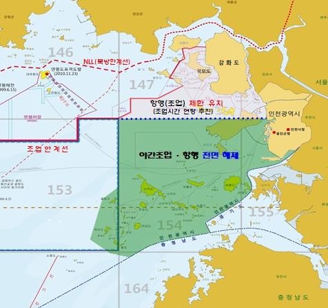 다만, 강화도 주변 어장에 대해서는 현행 조업시간을 4시간 연장하는 방안을 건의했으나, 안보상 이유로 일출·일몰 전후 각 30분씩 총 1시간 연장하는 것으로 협의됐다.